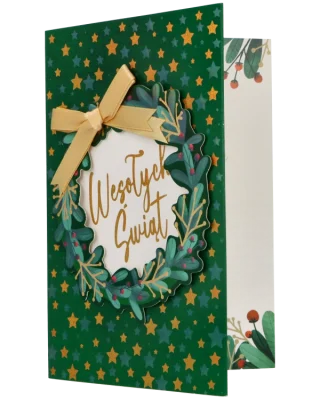 Elegancki Wieniec Świąteczny z Życzeniami na świątecznym karnecie