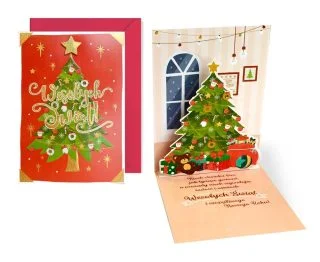 Kartka z okazji świąt Bożego Narodzenia z motywem udekorowanej choinki