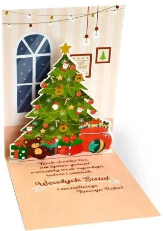Piękna kartka z życzeniami z okazji Bożego Narodzenia , kartka przestrzenna, efekt 3D