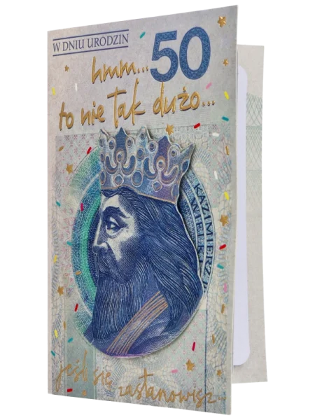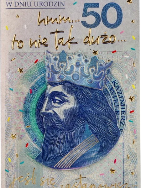 sami powiedzcie, czy 50 to tak dużo? Nie! Ile za to można kupić… 😉 Król Kazimierz III Wielki, bywa przekonywujący w składaniu życzeń 🙂 Idealna kartka dla kumpla, brata, sąsiada z poczuciem humoru. Zabawna, wesoła i karteczka sprawi, ze poważne życzenia będą miej oficjalne.
