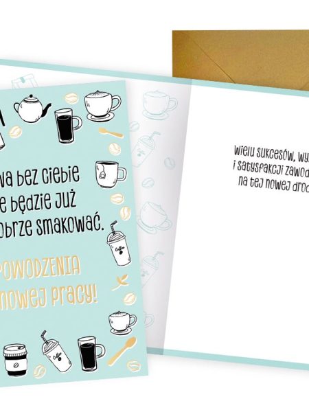 Kartka pocztowa z podziękowaniem za współpracę dla współpracownika, którego bardzo lubiliśmy i wysoko ceniliśmy! Kawa bez Ciebie nie będzie juz tak dobrze smakować.