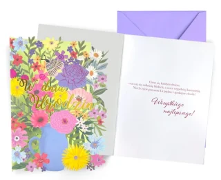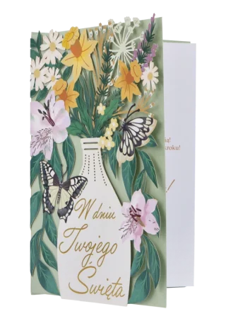 Kartka z delikatnym bukietem na dowolną okazję „W dniu Twojego Święta”