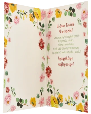 Piękna kartka z życzeniami na pięćdziesiąte urodziny