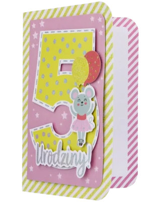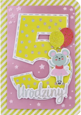Kartka z przestrzenna z cyferką z okazji 5 urodzin dziewczynki